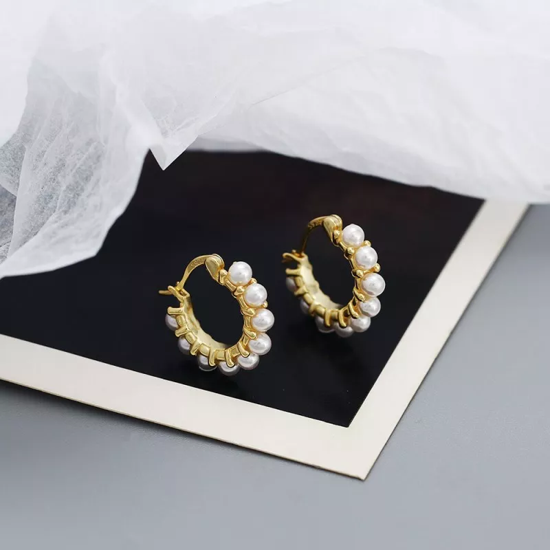 Elegant Beaded Pearl Hoop Earrings